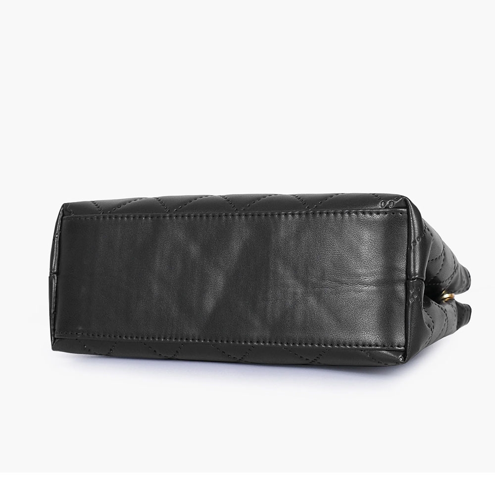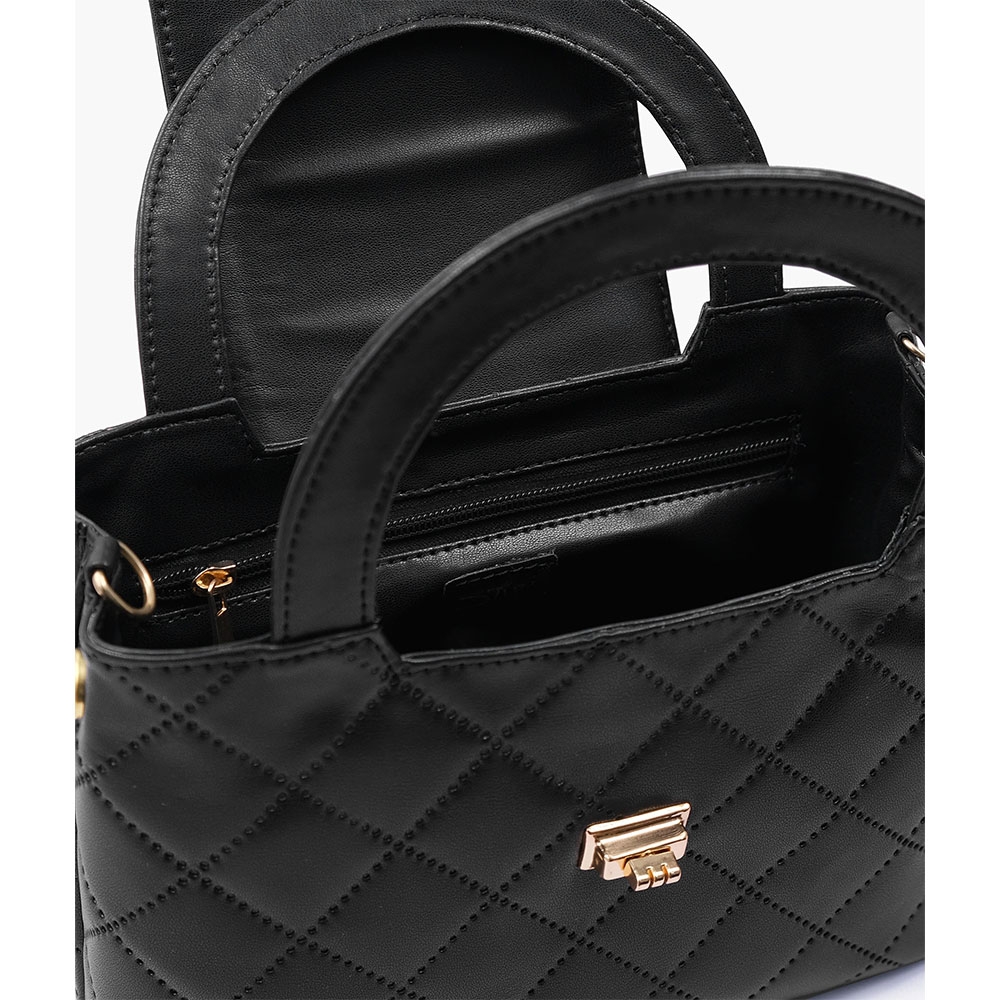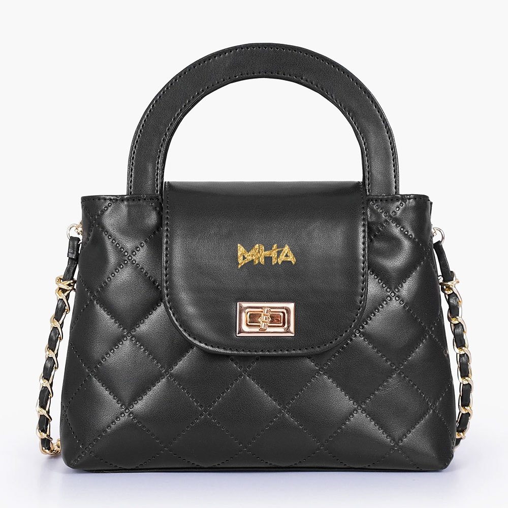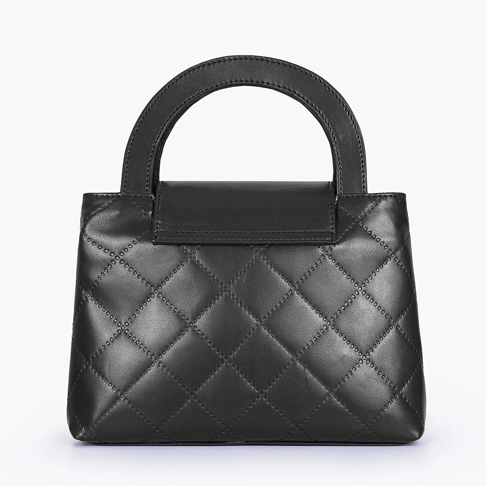 *Black Flap Quilted Bag With Top Handle